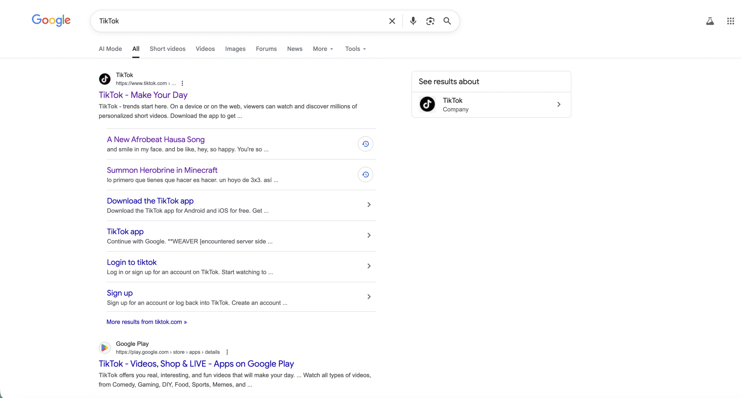 Nếu bạn thấy nhiều tùy chọn “TikTok dành cho Windows”trên trang web của bên thứ ba, hãy bỏ qua chúng. Chỉ sử dụng danh sách Microsoft Store hoặc trang web TikTok chính thức để tránh phần mềm độc hại và trình cài đặt giả mạo.