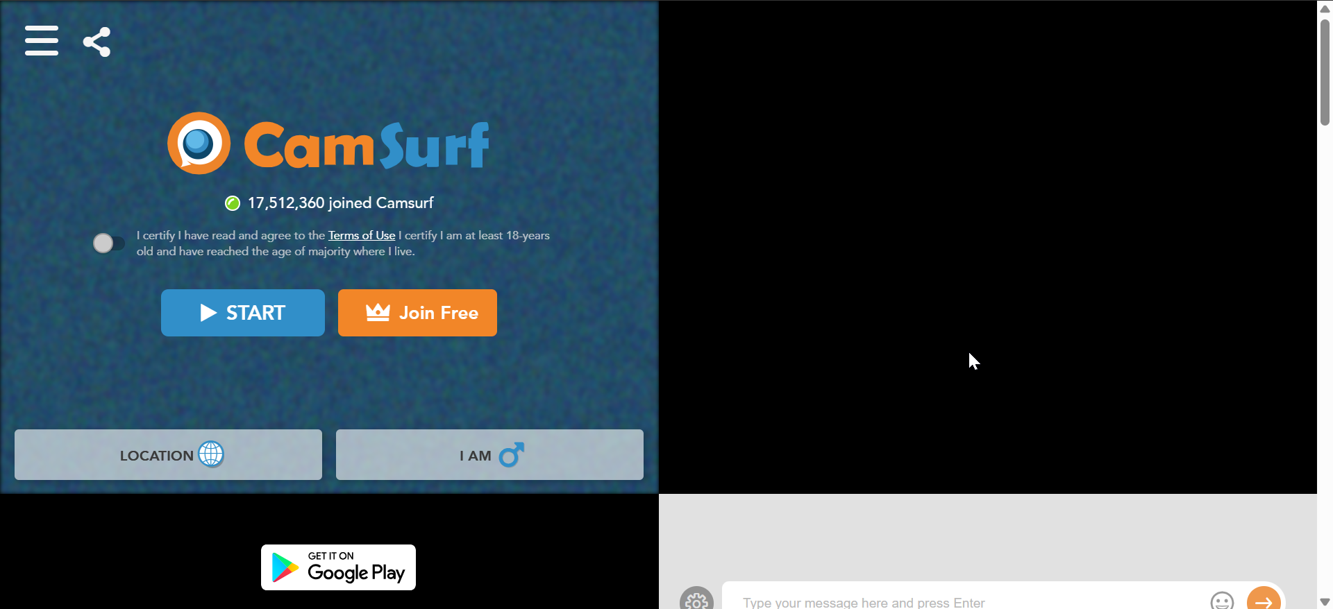 Camsurf giúp trải nghiệm trở nên đơn giản: bạn nhấp vào bắt đầu, cho phép truy cập vào máy ảnh của mình và bắt đầu trò chuyện. Nó tập trung vào việc ghép nối nhanh và các tính năng gọn nhẹ không gây choáng ngợp cho người dùng mới. Bộ lọc quốc gia và ngôn ngữ của dịch vụ này giúp bạn trò chuyện trực tiếp hơn.