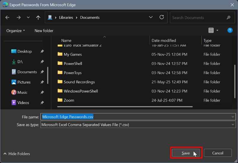 Chính là vậy. Như vậy là bạn đã xuất mật khẩu đã lưu từ trình duyệt Microsoft Edge. Hãy nhớ rằng tệp xuất ở dạng văn bản thuần túy. Điều này có nghĩa là bất kỳ ai có quyền truy cập vào máy tính của bạn đều có thể mở tệp đã xuất và xem tất cả mật khẩu của bạn. Vì vậy, hãy giữ nó ở một nơi an toàn và bảo mật. Vì vậy, hãy xóa tệp này một cách an toàn nếu bạn không cần nó nữa.