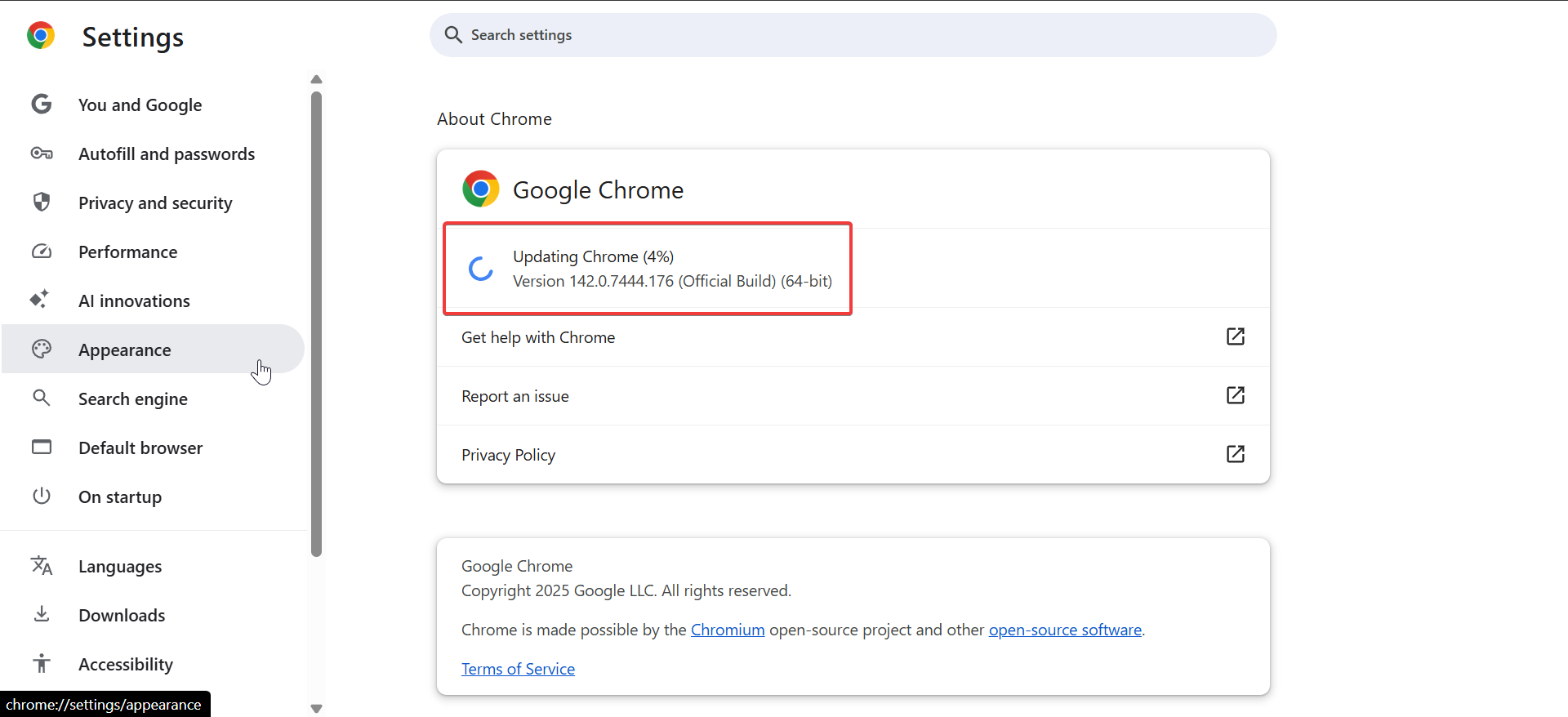 Chrome tự động kiểm tra các bản cập nhật nhưng bạn có thể kích hoạt cập nhật theo cách thủ công. Cập nhật sẽ làm mới công cụ JavaScript của bạn.
