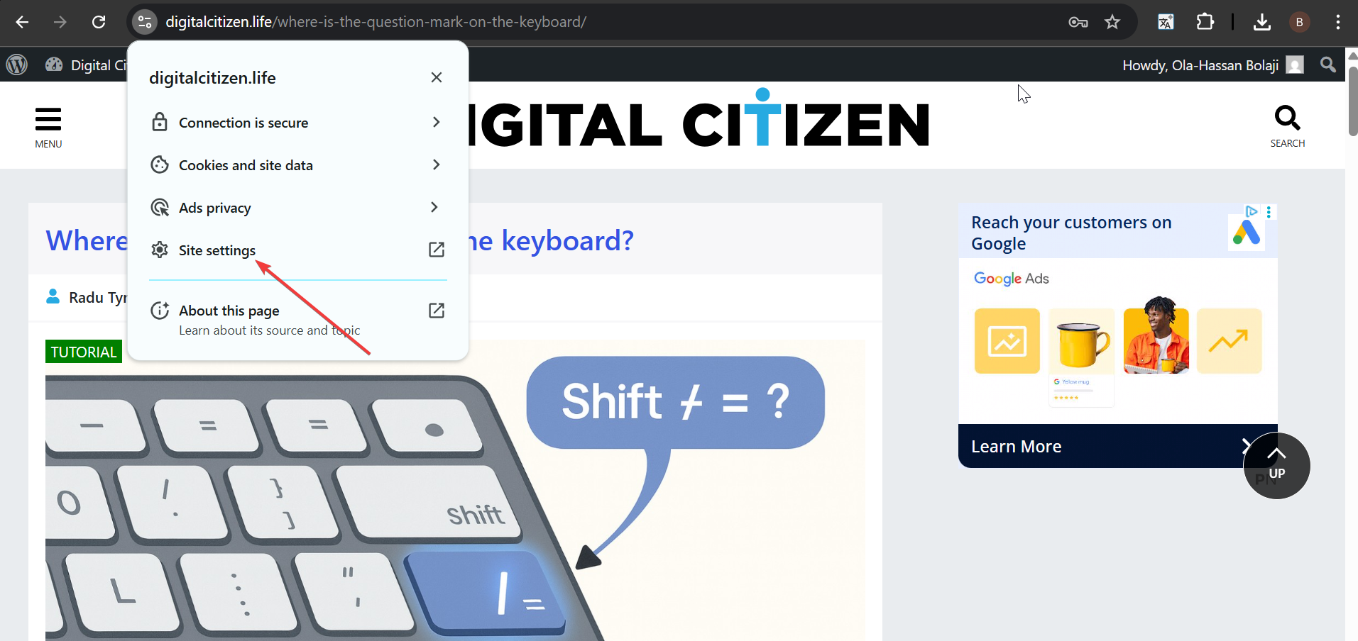 Mở trang web. Nhấp vào biểu tượng khóa trên thanh địa chỉ. Chọn Cài đặt trang web.