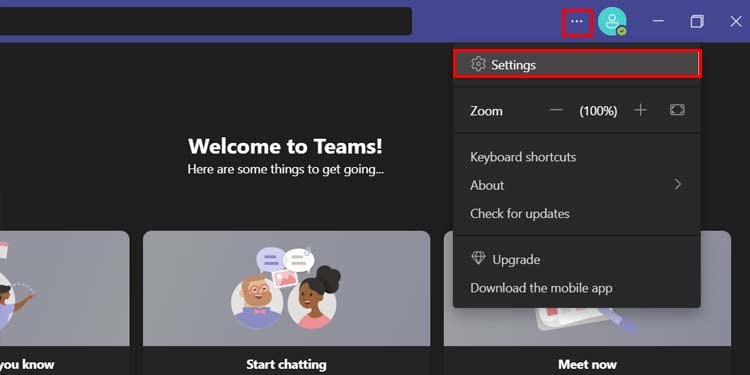 Mở ứng dụng Microsoft Teams. Đăng nhập bằng tài khoản Nhóm của bạn. Chuyển đến Cài đặt của Nhóm sau khi nhấp vào ba dấu chấm.