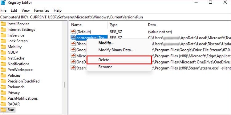 Registry là một chương trình Windows nâng cao lưu trữ dữ liệu cơ bản trên PC của bạn. Bạn có thể thay đổi sổ đăng ký bằng cách sử dụng chương trình chỉnh sửa sổ đăng ký, chương trình này yêu cầu quyền của quản trị viên. Nếu bạn có ứng dụng Teams ở chế độ tự động khởi động, ứng dụng này cũng sẽ hiển thị trên sổ đăng ký. Xóa mục đăng ký đó sẽ ngăn các nhóm khởi chạy khi khởi động.