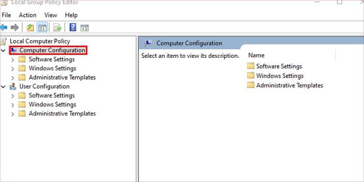 Mở ứng dụng Run bằng cách nhấn Win + R. Nhập gpedit.msc rồi nhấn Enter. Nhấp vào Cấu hình máy tính từ bảng điều khiển bên trái.