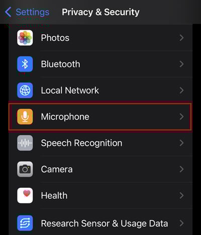 Mở cài đặt của iPhone và Chuyển đến Quyền riêng tư. Nhấn vào Micrô.