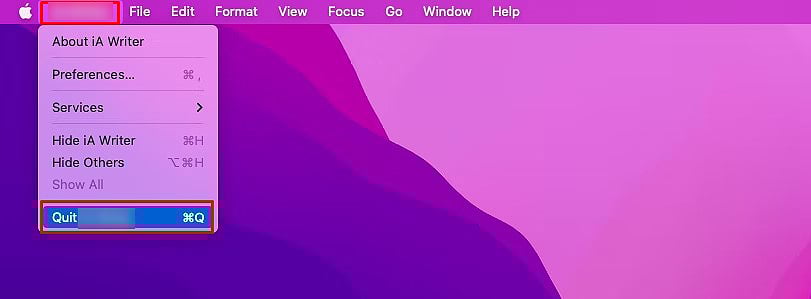 Đưa ứng dụng bạn muốn thoát lên nền trước. Sau đó, từ thanh menu, nhấp vào tên của ứng dụng cụ thể. Chọn Thoát.