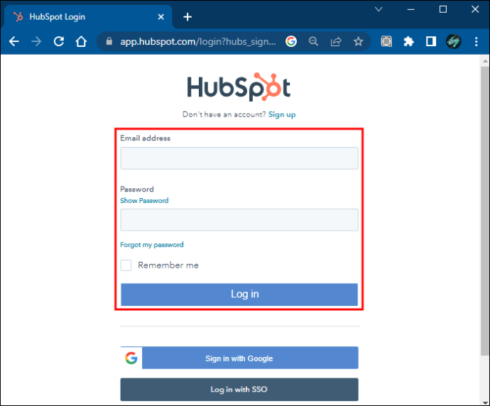 Đăng nhập vào tài khoản HubSpot của bạn.