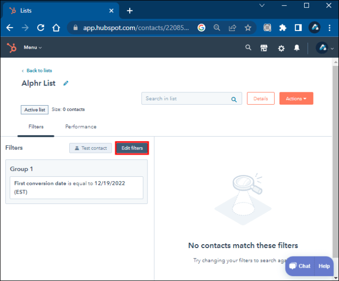 Hoặc, bạn cũng có thể sửa đổi tiêu chí của danh sách đang hoạt động. Sau khi bạn làm như vậy, mọi địa chỉ liên hệ tương ứng với cài đặt mới sẽ tự động xuất hiện trong danh sách hoạt động.