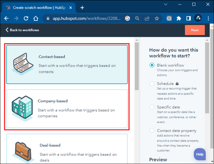 Bắt đầu bằng cách tạo quy trình làm việc, cho dù là liên hệ-hay công ty-dựa trên.