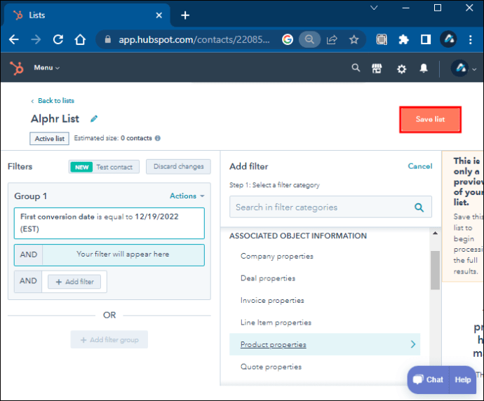 Để tạo danh sách HubSpot, bạn có thể làm theo các bước sau: