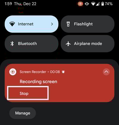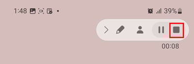 Để dừng ghi, hãy nhấn vào Hình vuông ở góc trên bên phải.