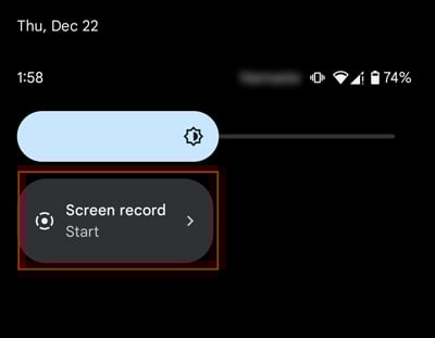 Vuốt xuống từ Trên cùng, bạn có thể cần vuốt xuống một lần nữa để xem thêm các phím tắt. Sau đó vuốt sang trái và bạn sẽ thấy tùy chọn Bản ghi màn hình. Chạm vào nó.