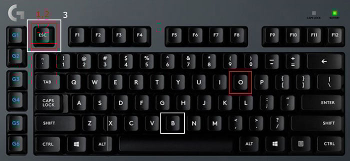 Xác nhận lựa chọn của bạn. Sau đó, trong khi bàn phím đang Bật, hãy nhấn lần lượt các tổ hợp phím Esc + o, Esc + o rồi Esc + b